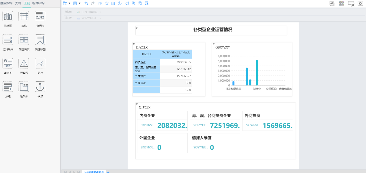 通過拖拽維度和指標(biāo)即可自主完成圖表分析。自助分析報(bào)表有:多維分析、敏捷看板和看板集。