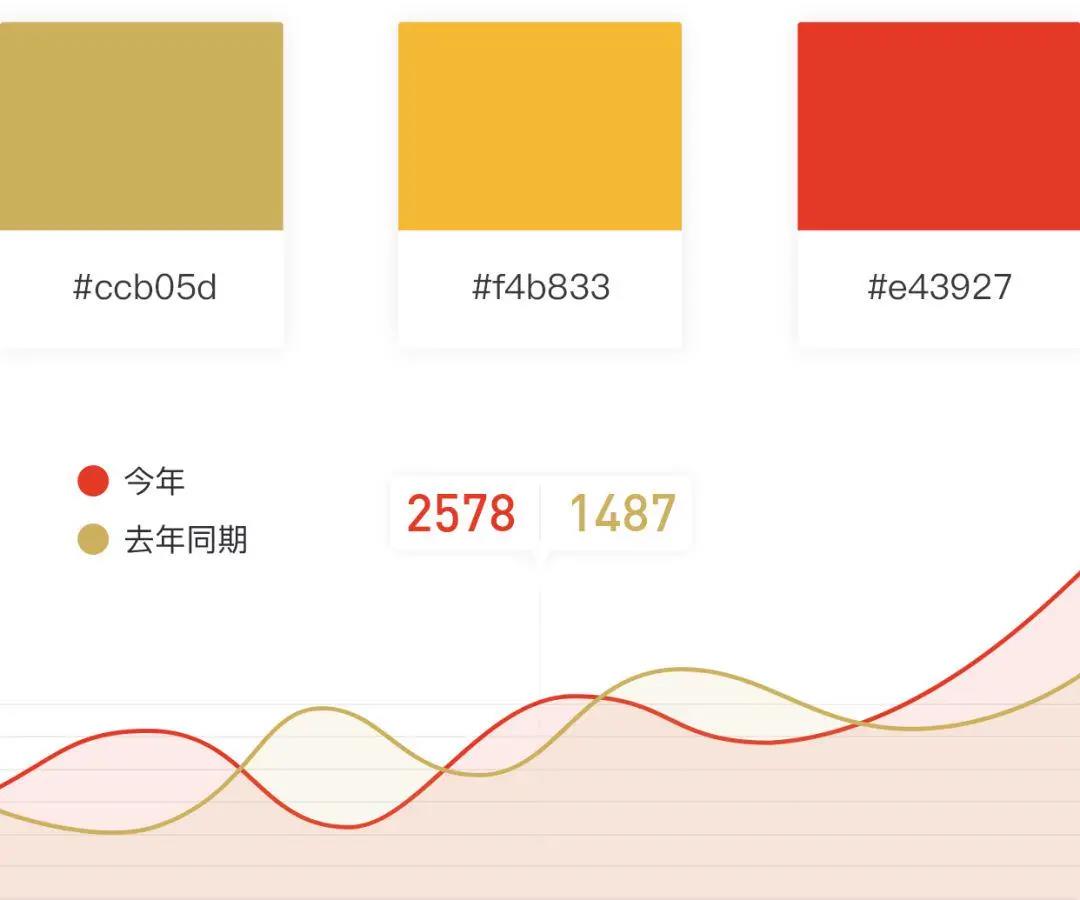除了與背景的配色對比外,圖表本身的顏色選擇也很重要,要利于業務信息傳達。選擇的顏色不要過于相近,這樣不利于數據間的區分,會降低閱讀舒適感。