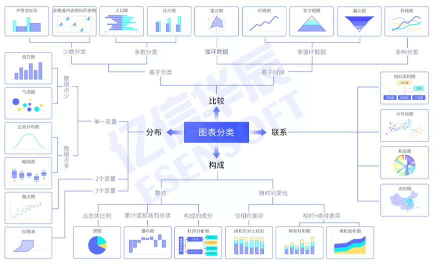 以上四種就是可視化圖表中的四種基本圖表,而進(jìn)階圖表也有一部分是由它們變換而來。
